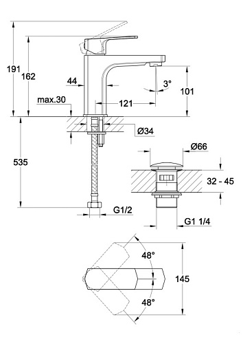 Оснащение смеситель, подводка для воды, донный клапан, крепеж, гарантийный талон, инструкция по эксплуатации