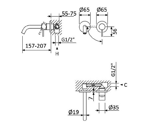 Смеситель для раковины Cezares LEAF LEAF-BLI2-20-L-SS