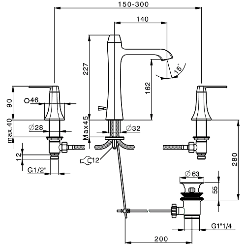 Смеситель для раковины Cisal CF0010607C Cherie , цвет золото,черный матовый