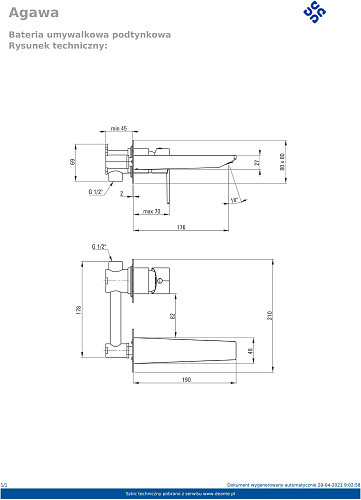 Смеситель Deante BQG_054L Agawa для раковины настенный, с внутренней частью, хром