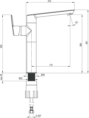Вид смесителя: однорычажный, смешивающий. Акустическая группа [дБ]: I (x ? 20). Размер картриджа: 35 мм. Вид излива: оборачиваемая. Тип аэратора: силиконовый. Размер аэратора: M24. Соединительные шланги - длина [мм]: 450. Винт к инсталляции: 3/8''. Винт кронштейна: M10. Клапан вид: click-clack. Тип: без перелива.