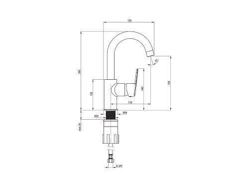 Вид смесителя: однорычажный, смешивающий. Акустическая группа [дБ]: I (x ? 20). Размер картриджа: 35 мм. Вид излива: оборачиваемая. Тип аэратора: силиконовый. Размер аэратора: M22. Соединительный шланг - длина [мм]: 450. Винт к инсталляции: 3/8''. Винт кронштейна: M10. Корпус смесителя изготовлен из латуни высочайшего качества. Смеситель оборудован струйным аэратором. Силиконовый аэратор для легкого удаления известкового налета. Монтажная втулка облегчает установку смесителя. Соединительные шланги 45 см в комплекте. Инновационное, прочное и легко очищаемое титановое покрытие. Функциональный клапан click-clack в комплекте. Специальное средство, безопасное для очищаемых поверхностей.