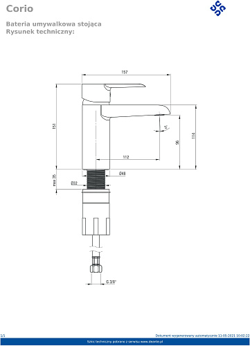 Смеситель Deante BFC_020M Corio для раковины без донного клапана, хром