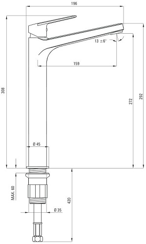 Вид смесителя: однорычажный, смешивающий. Класс расхода [л/мин]: Z - 4-9 л/мин. Акустическая группа [дБ]: II (20 < x ? 30). Размер картриджа: 25 мм. Вид излива: стандартный. Тип аэратора: honeycomb. Размер аэратора: M24. Соединительный шланг - длина [мм]: 450. Винт к инсталляции: 3/8''. Винт кронштейна: M8. Корпус смесителя изготовлен из латуни высочайшего качества. Смеситель оборудован струйным аэратором. Монтажная втулка облегчает установку смесителя. Соединительные шланги 45 см в комплекте. Класс расхода Z (4-9 л/мин) позволяет снизить употребление воды. Инновационное, прочное и легко очищаемое покрытие Nero. Специальное средство, безопасное для очищаемых поверхностей.