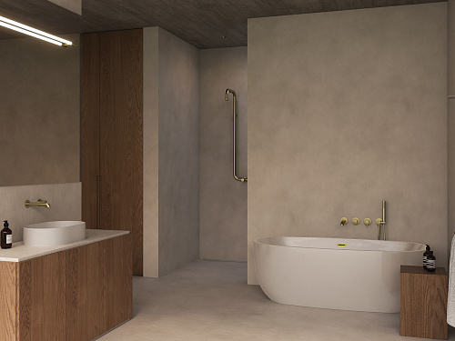 Смеситель Deante BQS_R54L Silia для раковины настенный, с внутренней частью, брашированное золото