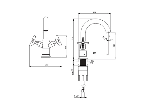 Смеситель Deante BQT_M20D Temisto для раковины двухрычажный, без донного клапана, латунь