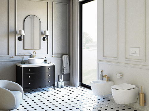 Вид смесителя: однорычажный, смешивающий. Класс расхода [л/мин]: Z - 4-9 л/мин. Акустическая группа [дБ]: I (x ? 20). Размер картриджа: 25 мм. Вид излива: оборачиваемая. Тип аэратора: подвижный, honeycomb. Соединительный шланг - длина [мм]: 450. Винт к инсталляции: 3/8''. Винт кронштейна: M10. Элементы ручной работы. Дизайн, объединяющий прошлое с будущим. Инновационное долговечное покрытие цвета латуни. Корпус смесителя изготовлен из латуни высочайшего качества. Благодаря рычагу который сбоку облегчено поддержание чистоты носика. Соединительные шланги 45 см в комплекте. Смеситель оборудован струйным аэратором. Мобильный аэратор позволяет направлять струю воды. Класс расхода Z (4-9 л/мин) позволяет снизить употребление воды. Рекомендуется приобрести универсальную заглушку в цвет смесителя.