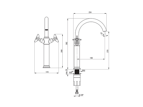 Смеситель Deante BQT_M25D Temisto для раковины двухрычажный, высокий, без донного клапана, латунь