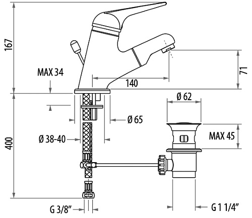 Тип товара Смеситель для раковины