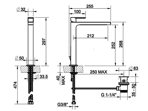 Смеситель для раковины 29903-031 GESSI BAGUTTA, цвет хром, гибкая подводка, донный клапан.