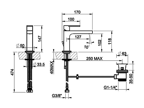 Смеситель для раковины 29904-031 GESSI BAGUTTA, цвет хром, гибкая подводка, донный клапан.