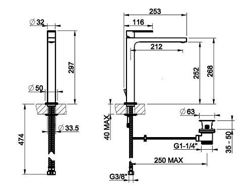 Смеситель для раковины 38603.149 GESSI MANZONI высокий, цвет нержавеющая сталь.