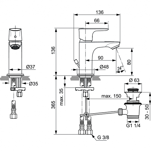Смеситель Ideal Standard A7014AA Connect Air для раковины, Chrome (хром)