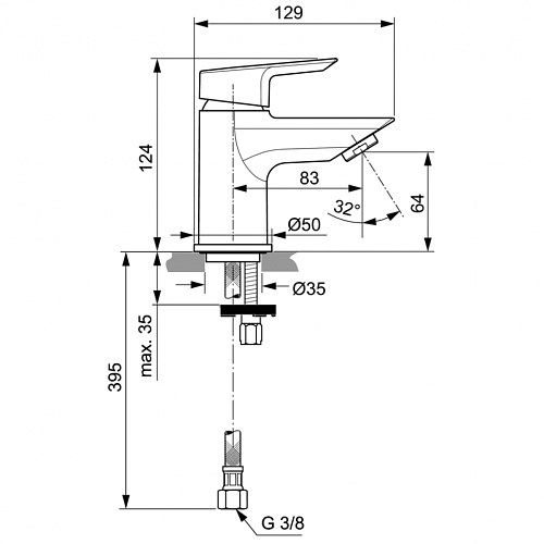 Гибкая подводка G3/8’’, шланги стандартной длины 400 мм.