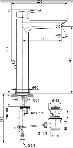 Смеситель Ideal Standard A6573AA Tesi для раковины-чаши, Chrome (хром)