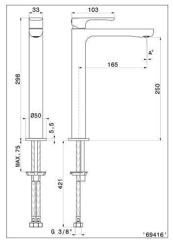 Материал корпуса – латунь. Соединение 3/8”. Без донного клапана в комплекте. Гарантия 5 лет.