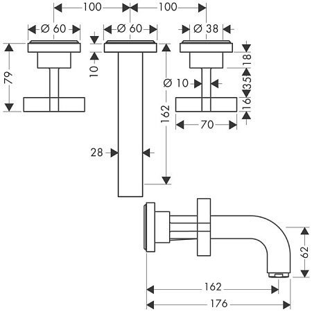 Смеситель для раковины, на 3отв., стеновой Hansgrohe Citterio 39313000