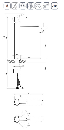 Смеситель Ravak X070182 Puri для раковины, без донного клапана, черный