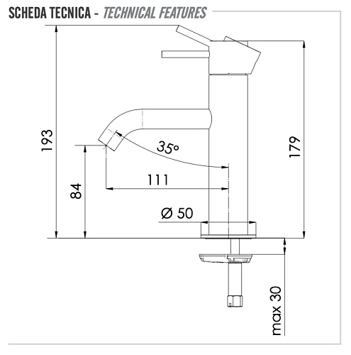 Смеситель для раковины Remer Rubinetterie X-Style X12VO