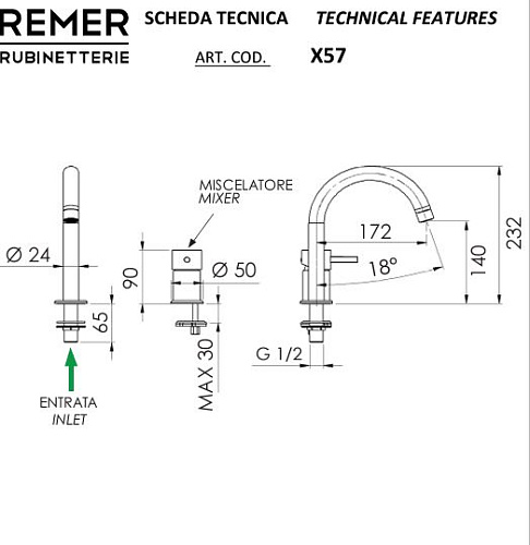 Смеситель для раковины Remer Rubinetterie X-Style X57RL
