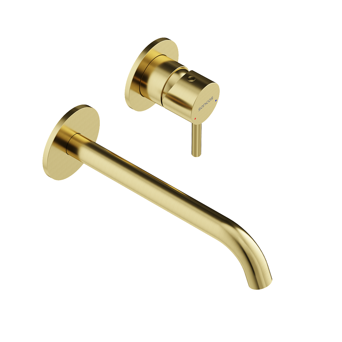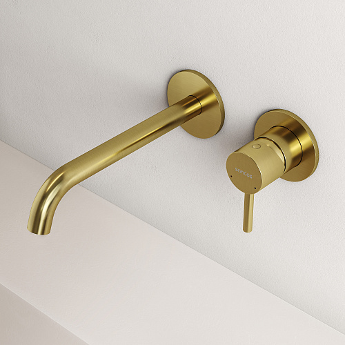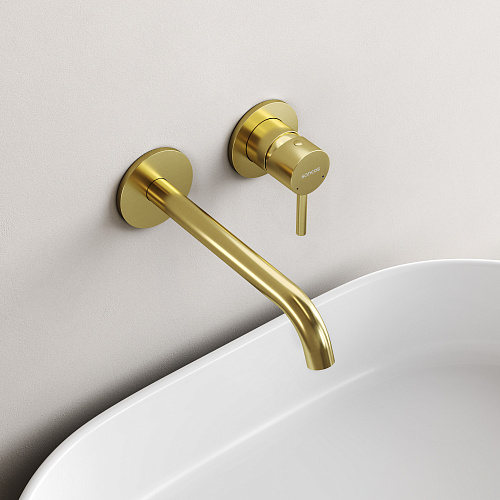 Встраиваемый в стену смеситель для раковины с внутренней частью из латуни; Точная регулировка температуры и напора воды с используемыми картриджами SEDAL (Испания); Мягкий поток воды без разбрызгивания за счёт силиконовых аэраторов Neoperl®; Экстра прочное покрытие методом PVD; Цвет брашированное золото