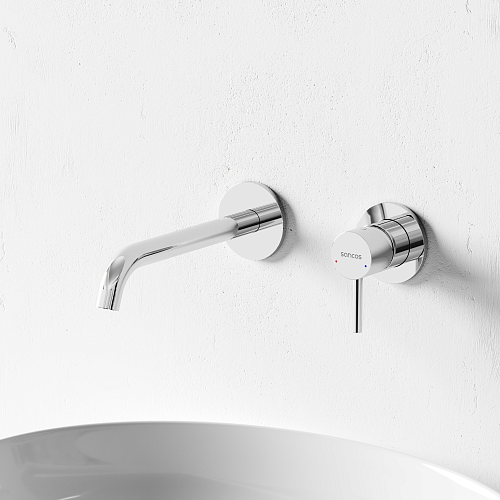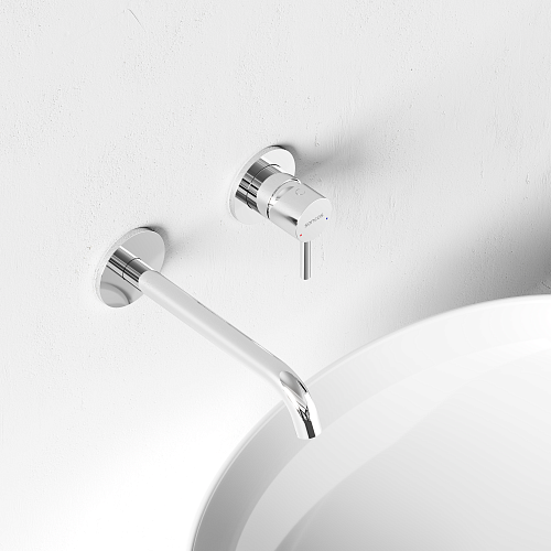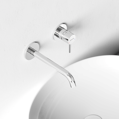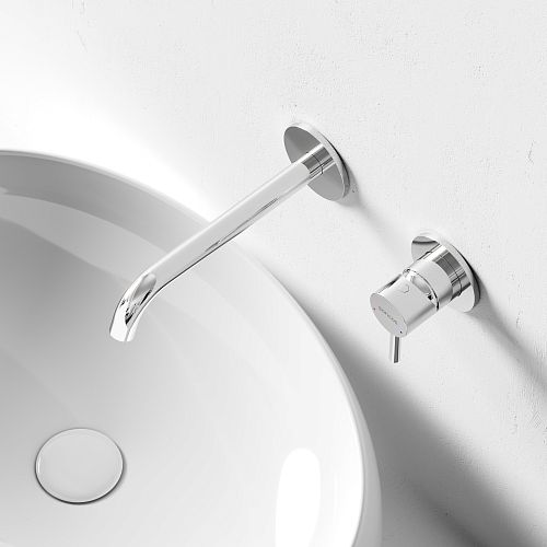 Встраиваемый в стену смеситель для раковины с внутренней частью из латуни; Точная регулировка температуры и напора воды с используемыми картриджами SEDAL (Испания); Мягкий поток воды без разбрызгивания за счёт силиконовых аэраторов Neoperl®; Надежное покрытие методом элетроплейтинга; Цвет хром глянцевый