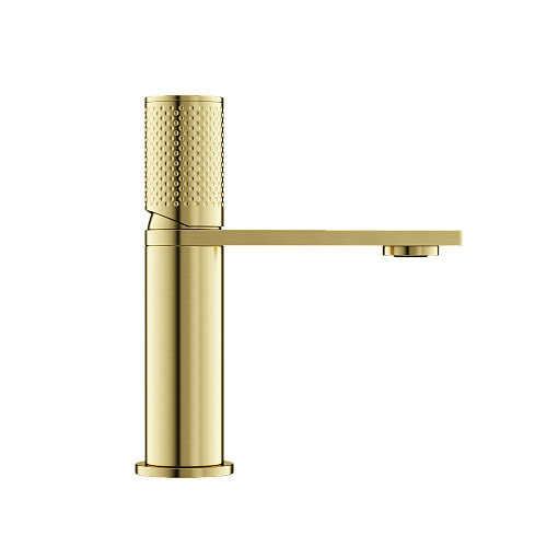 Смеситель для раковины с рифленой ручкой управления;Надёжный корпус из прочной латуни; Точная регулировка температуры и напора воды с используемыми картриджами SEDAL (Испания); мягкий поток воды без разбрызгивания за счёт силиконовых аэраторов Neoperl®; Гибкая подводка в оплетке из нержавеющей стали, с увеличенной длиной - 600 мм; Экстра прочное покрытие методом PVD; Цвет брашированное золото