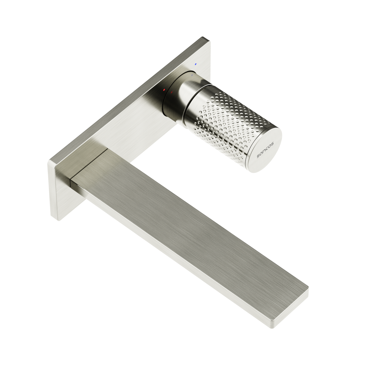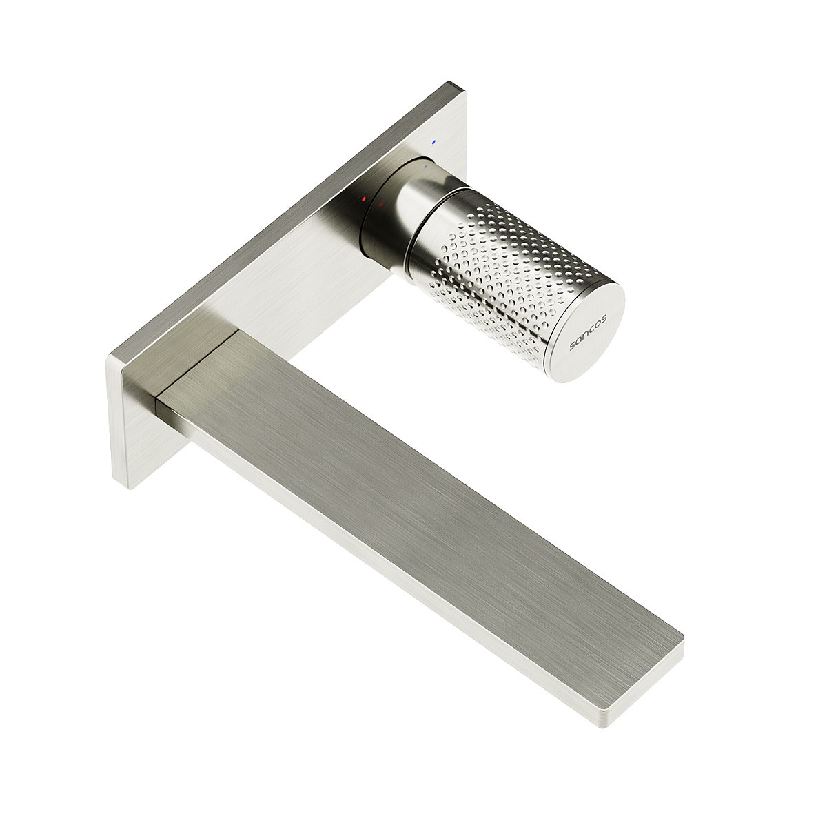 Смеситель для раковины скрытого монтажа с рифленой ручкой управления. Надёжный корпус из прочной латуни; Точная регулировка температуры и напора воды с используемыми картриджами SEDAL (Испания) ; мягкий поток воды без разбрызгивания за счёт силиконовых аэраторов Neoperl; Экстра прочное покрытие PVD; Цвет брашированный никель