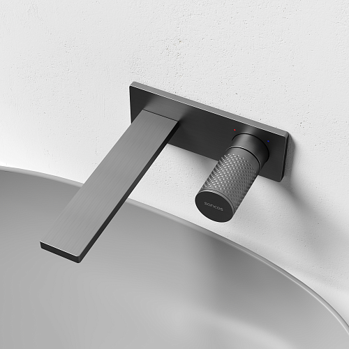 Смеситель для раковины скрытого монтажа с рифленой ручкой управления. Надёжный корпус из прочной латуни; Точная регулировка температуры и напора воды с используемыми картриджами SEDAL (Испания) ; мягкий поток воды без разбрызгивания за счёт силиконовых аэраторов Neoperl; Надежное покрытие методом элетроплейтинга; Цвет вороненая сталь