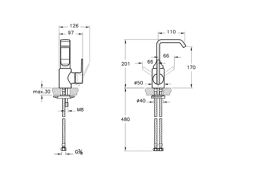 Смеситель Vitra A42467EXP Suit U для раковины, Chrome (хром)