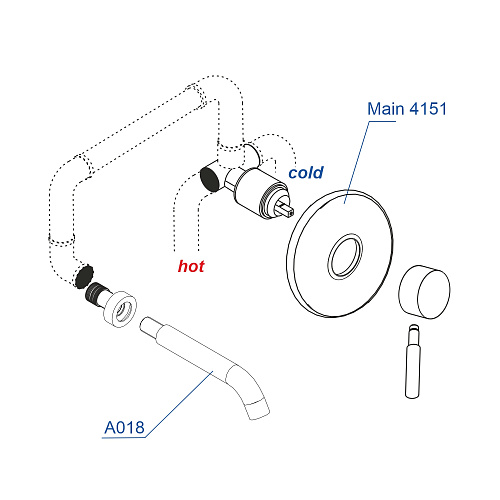Оснащение Смеситель для душа Main 4151, Настенный излив для ванны A018
