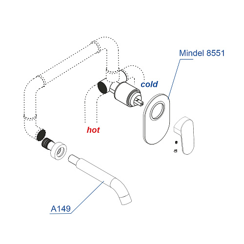 Оснащение Смеситель для душа Mindel 8551, Настенный излив для ванны A149
