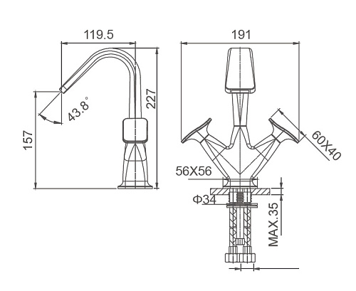 Смеситель для раковины Wonzon & Woghand SHAKESPEARE WW-651103-DG