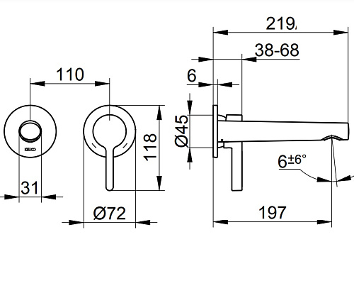Для встройки, DN 15, с ограничителем температуры, аэратор SLIM SSR M 24x1, угол наклона струи регулируется, поток воды ограничен 7,6 л/мин. Подходит для внутренней части арт. 59916 000070.