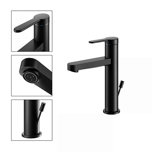 Оснащение Гарнитур для слива, донный клапан 1.1/4", с розеткой (круглой), система быстрого монтажа, аэратор M 20x1, гибкая подводка 570 мм G3/8 дюйма, поток воды ограничен 7 л/мин.