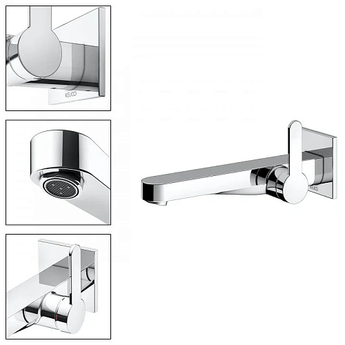 Для встройки, для умывальника, DN 15, дизайн IXMO Flat, с квадратной розеткой, аэратор SLIM SSR M 24x1, угол наклона струи регулируется, поток ограничен 7,6 л/мин. Подходит для внутренней части арт. 59916 000075.