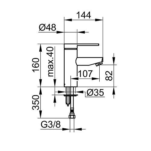 Оснащение Удлиненная рукоятка без гарнитуры для слива и донного клапана, система быстрого монтажа, ограничитель температуры, аэратор M 24x1, угол наклона струи регулируется +/- 8°, гибкая подводка 420 мм G3/8 дюйма, расход воды ограничен 6 л./мин.