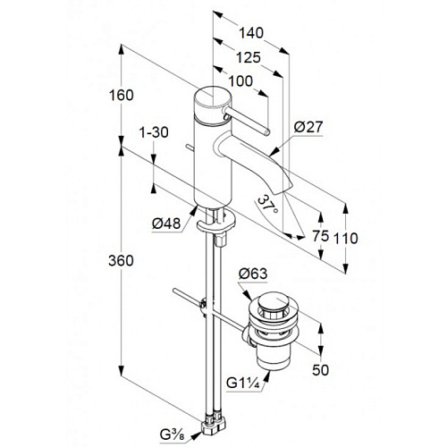 Смеситель Kludi 382700576 Bozz для умывальника, хром