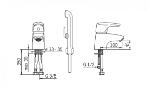 Cмеситель для умывальника с ручным душем Bidetta F = Гибкая подводка