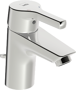 Oras Saga Style смеситель для умывальника с донным клапаном, фиксированным изливом и аэратором. Встроенная опция ограничения расхода и температуры воды. Расход воды 6.0 л/мин. Система монтажа Oras-3S. F= с гибкой подводкой