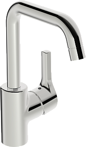 Oras Saga Style cмеситель с высоким поворотным изливом и донным клапаном. Встроенная опция ограничения расхода и температуры воды. Расход воды 6.0 л/мин. Система монтажа Oras-3S. F= с гибкой подводкой