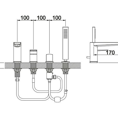 Управление: рычажное Материал: латунь Исполнение: хром Длина излива: 17 см Высота излива: 10 см Механизм: керамический картридж Отверстия для монтажа: 4 отверстия Тип подводки: 1/2" Оснащение: душевая лейка, душевой шланг, переключатель, аэратор Рабочий интервал давления в водопроводной сети: 0,5-6,0 Атм