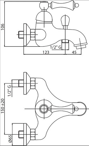 Смеситель Cezares MARGOT-PBVM-03/24-M на борт ванны, с ручным душем, золото 24 карат/ручки металл