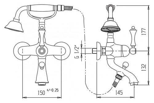Смеситель для ванны и душа однорычажный в комплекте с ручным душем