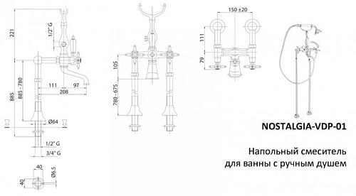 Смеситель для ванны Cezares Nostalgia NOSTALGIA-VDP-01