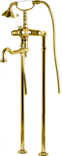 Смеситель Cezares VENEZIA-VDP2-03/24-Bi для ванны напольный, с поворотным изливом и ручным душем, золото