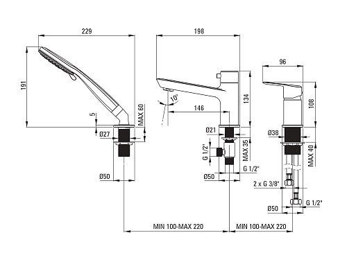 Смеситель Deante BQA_013M Arnika на борт ванны на 3 отверстия, хром