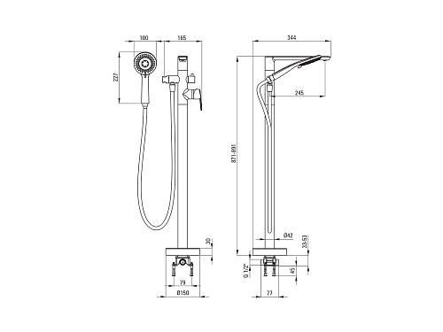 Смеситель Deante BQA_D17M Arnika для ванны напольный, с внутренней частью, Titanium (титан)