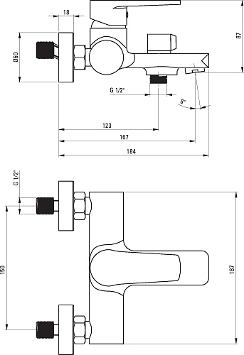 Смеситель Deante BUT_010M Tubo для ванны и душа, хром