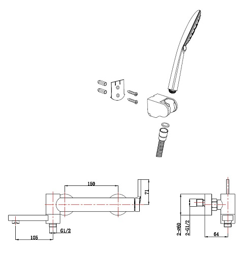 Тип товара Смеситель для ванны/душа